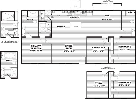 3 beds / 2 baths / 1,264 sq.ft. / 28x48